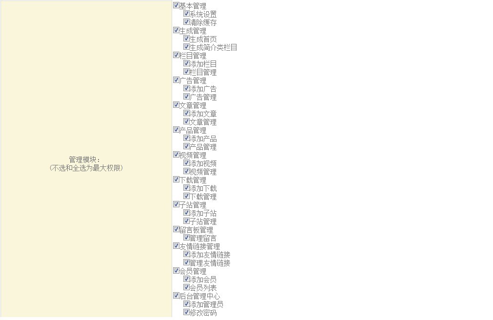 當我們需要添加管理員的時候,我們需要點擊添加管理員,然后將管理員的真實姓名、密碼、等信息進行完善后,在管理模塊中,勾上此管理員的一些權(quán)限,保存即可。