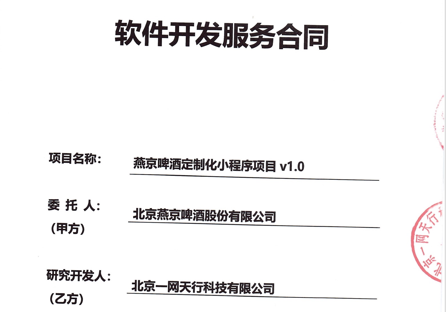 北京一網(wǎng)天行科技有限公司憑借成熟的快消行業(yè)數(shù)字化解決方案與創(chuàng)新技術(shù)實力,于近日正式與中國啤酒行業(yè)領(lǐng)軍企業(yè)——北京燕京啤酒股份有限公司達(dá)成戰(zhàn)略合作,簽約"燕京啤酒定制化小程序項目"!