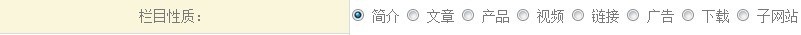 2、欄目性質(zhì):如下圖,欄目性質(zhì)選項(xiàng)中,選擇您要添加欄目的類型。