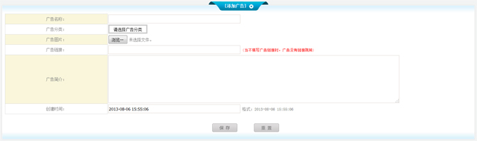 1、將您要添加的廣告名稱、廣告鏈接、廣告簡介、創(chuàng)建時間(默認(rèn))填好。