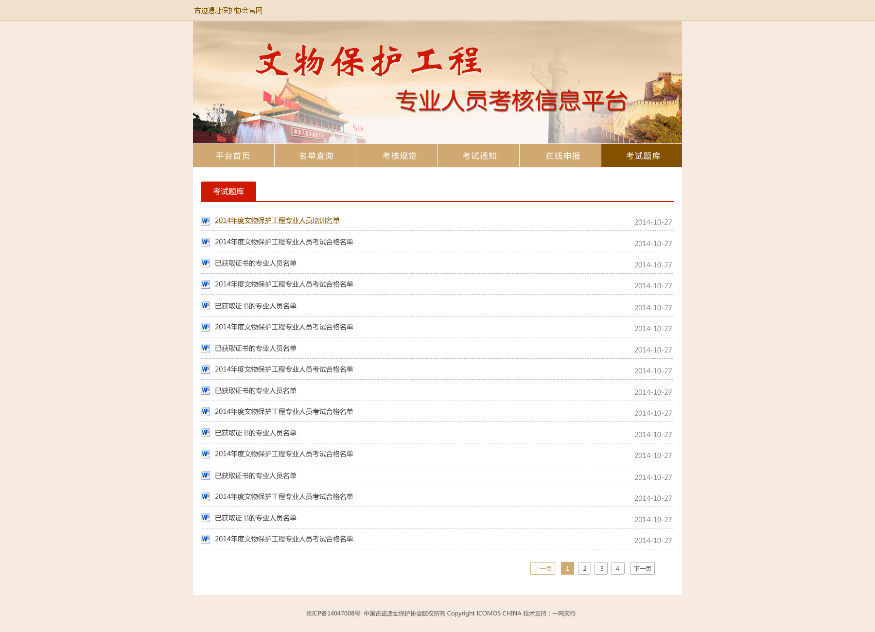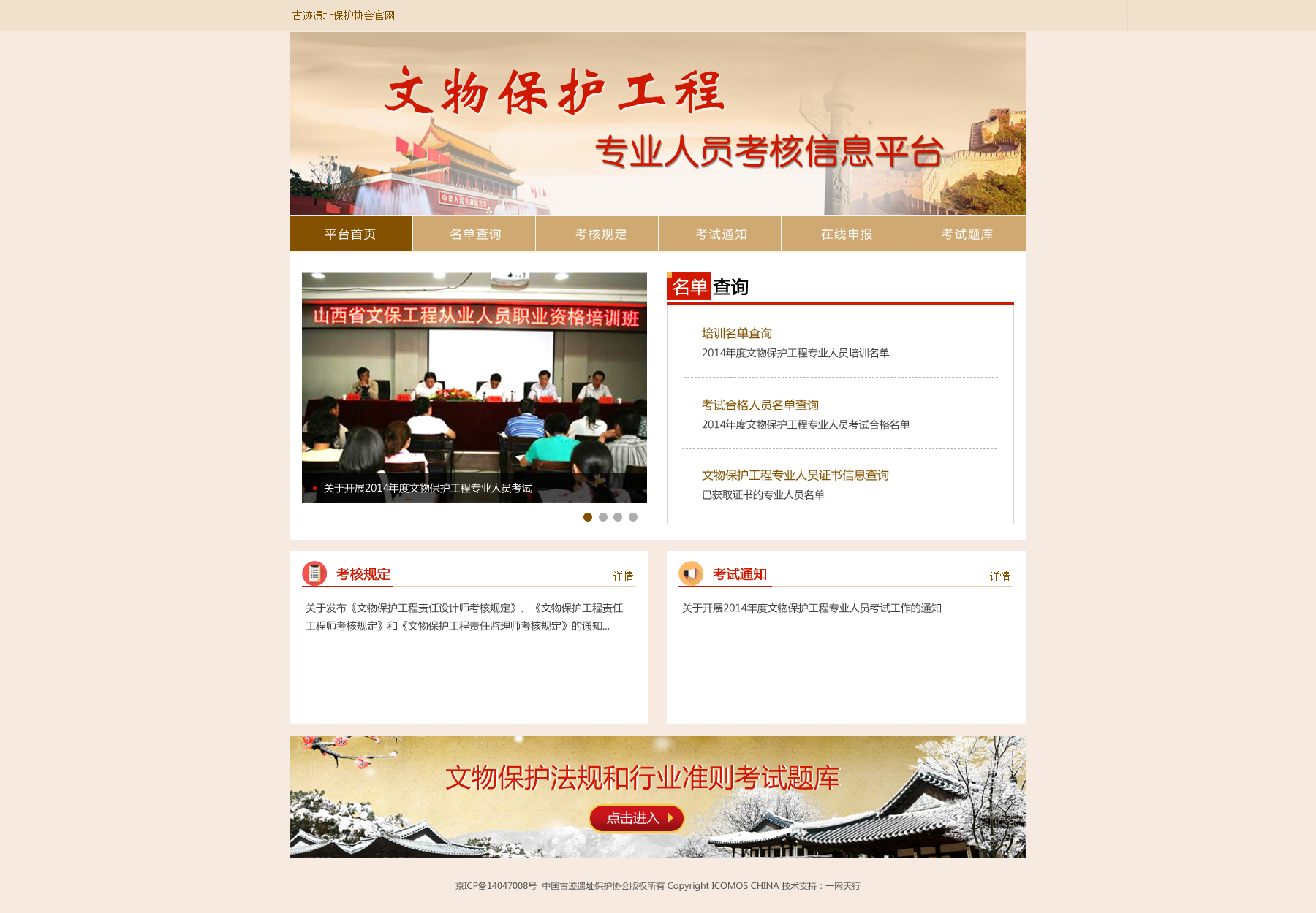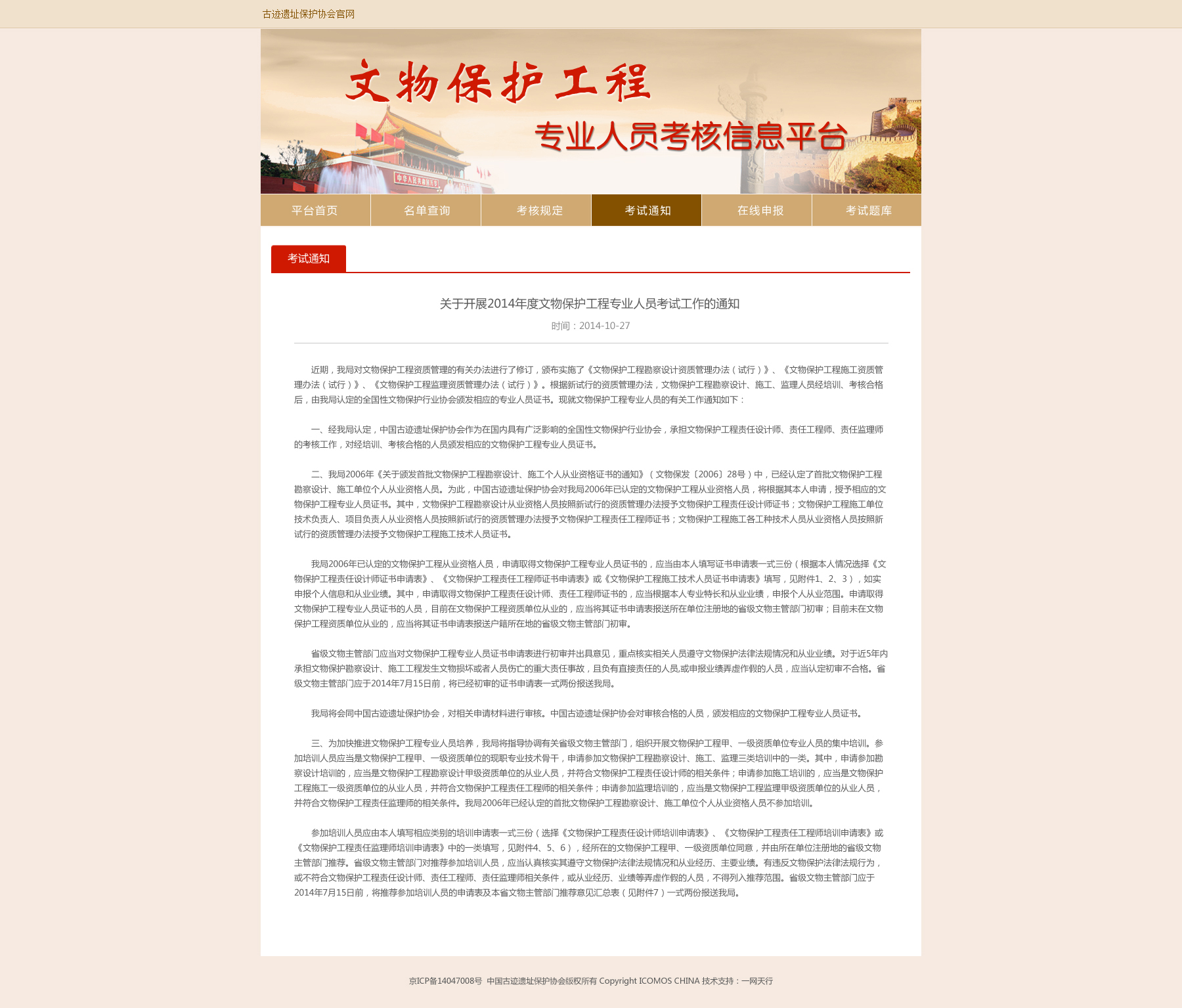 中國古跡遺址保護協(xié)會文物保護工程專業(yè)人員責(zé)任設(shè)計師和責(zé)任工程考核平臺